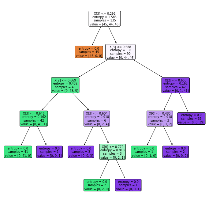tree.plot_tree(model, filled = True, rounded = True) #filled = True하면 색깔이 표시됨