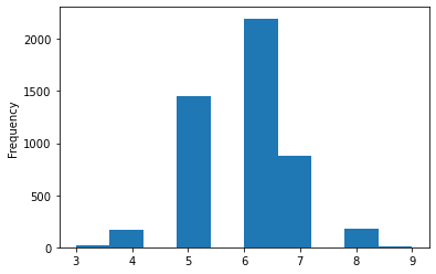 wine.quality.plot(kind = 'hist')