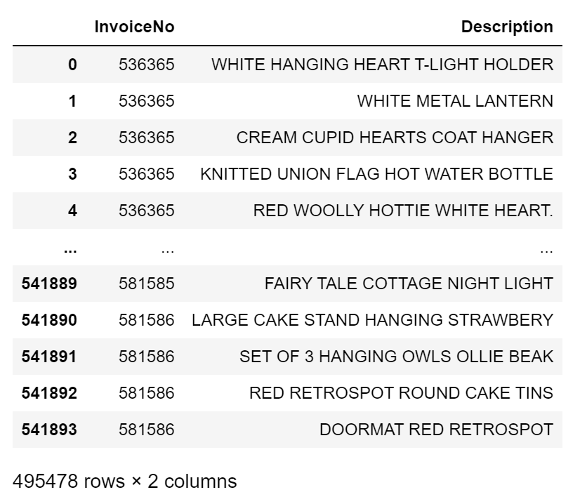 df[['InvoiceNo','Description']][df.Country == 'United Kingdom']