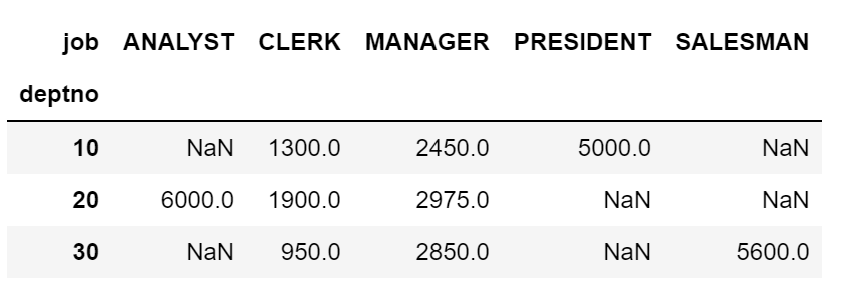emp.groupby(['deptno','job'])['sal'].sum().unstack()
