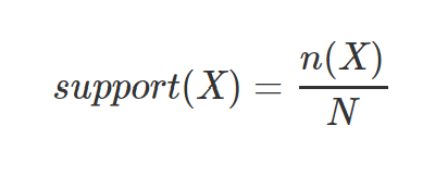 1. 지지도 : 해당 아이템이 전체 거래건수 중에서 얼마나 자주 나타나는지 빈도수(frequency)