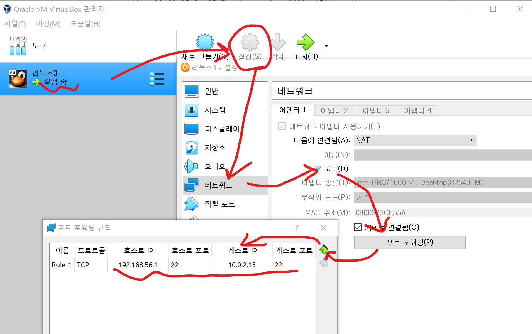 192.168.56.1와 10.0.2.15를 서로 링크를 맞춰줌.