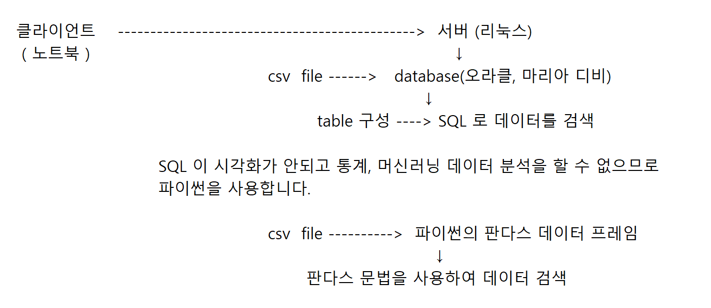 database는 계속 데이터 변동이 실시간으로 일어나고 있습니다. 그 변경된 데이터로 데이터 분석을 하거나 시각화를 해야하는데 만약 연동하지 않는다면 테이블을 csv파일로 os로 내려 이 내린 csv파일을 파이썬의 판다스 데이터 프레임으로 생성해야 합니다. 그런데 회사에 분석해야할 테이블은 아주 많고 그리고 그 양도 상당히 큽니다. 그래서 csv파일로 내리지 않고 바로 연동해서 분석을 하는 것입니다.