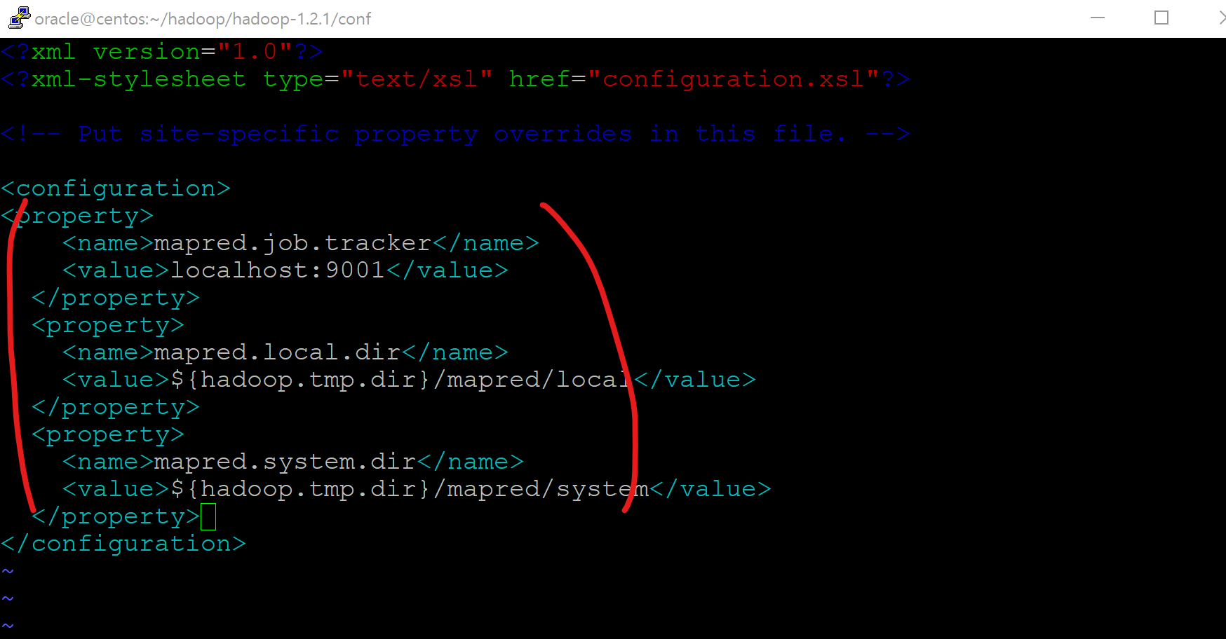 <value>/home/oracle/hadoop/hadoop-1.2.1/hadoop-${user.name}</value>