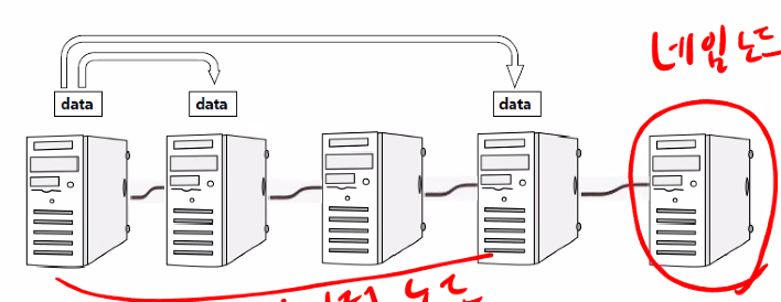 3. 데이터 노드 : emp.csv와 같은 데이터를 저장하는 컴퓨터들. 원본 1개에 백업본 2개를 항상 유지합니다.