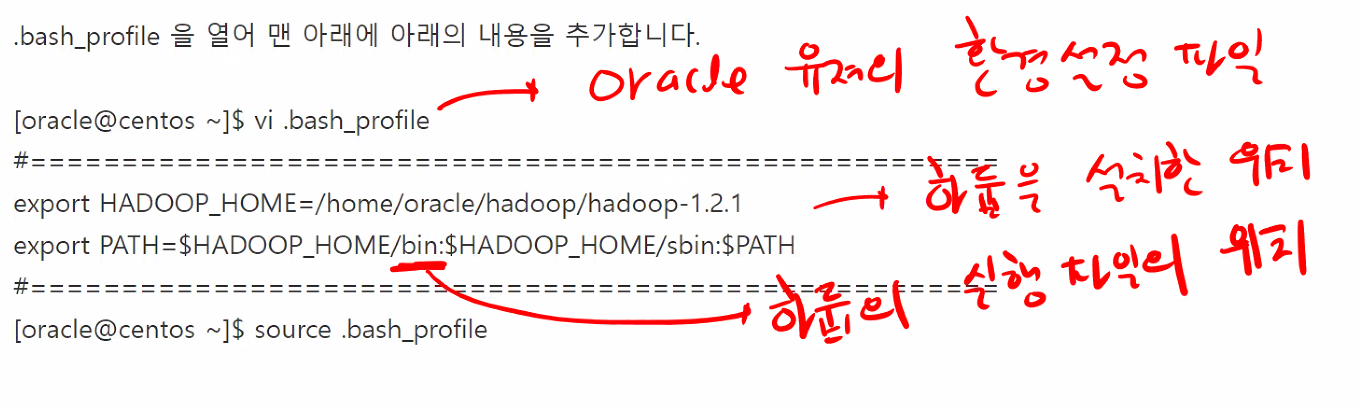 hadoop-env.sh : 자바 홈디렉토리와 hadoop 홈디렉토리가 어딘지 지정