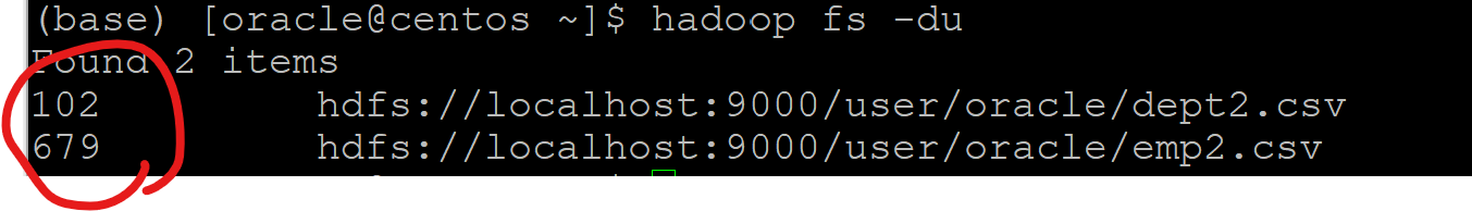 (base) [oracle@centos ~]$ hadoop fs -put emp.csv /user/oracle/emp100.csv