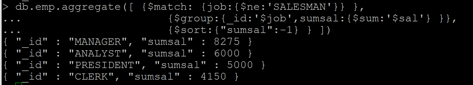 { "_id" : "MANAGER", "total" : 8275 }