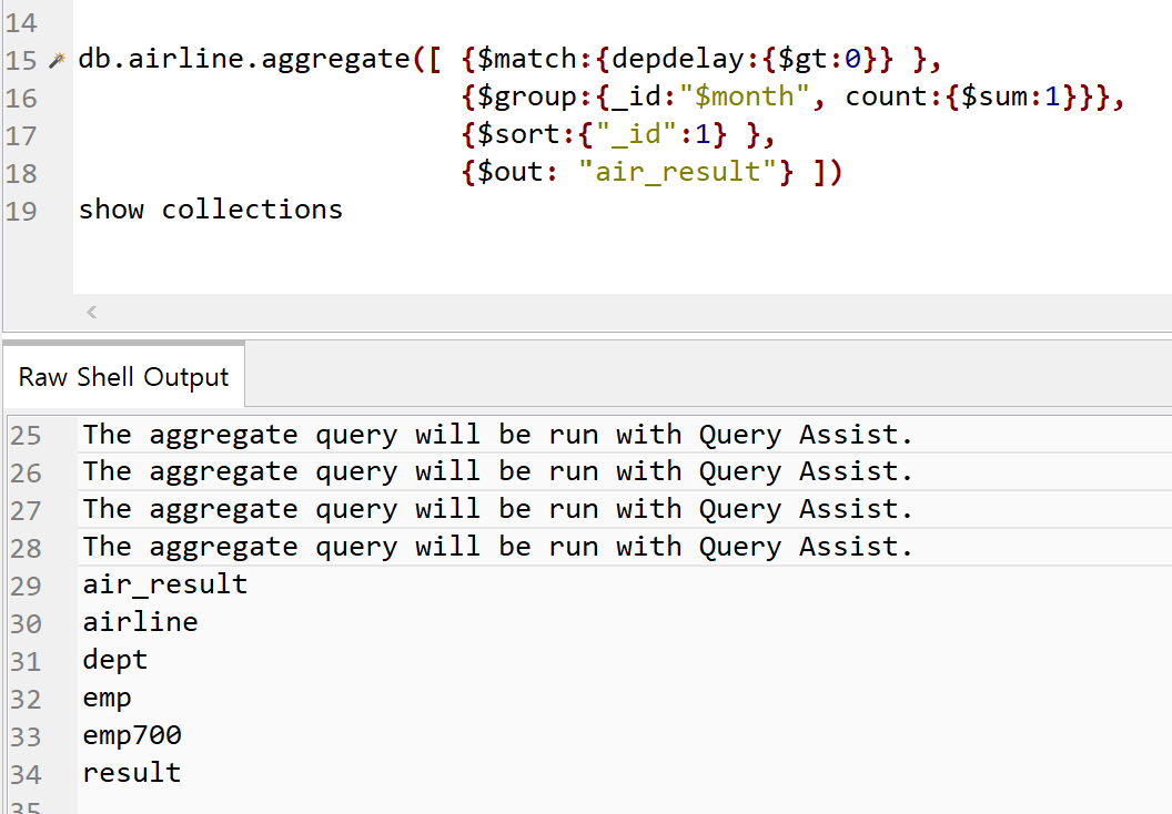 문제343. 위의 결과를 몽고 디비에서 air_result라는 이름으로 테이블로 생성하시오.