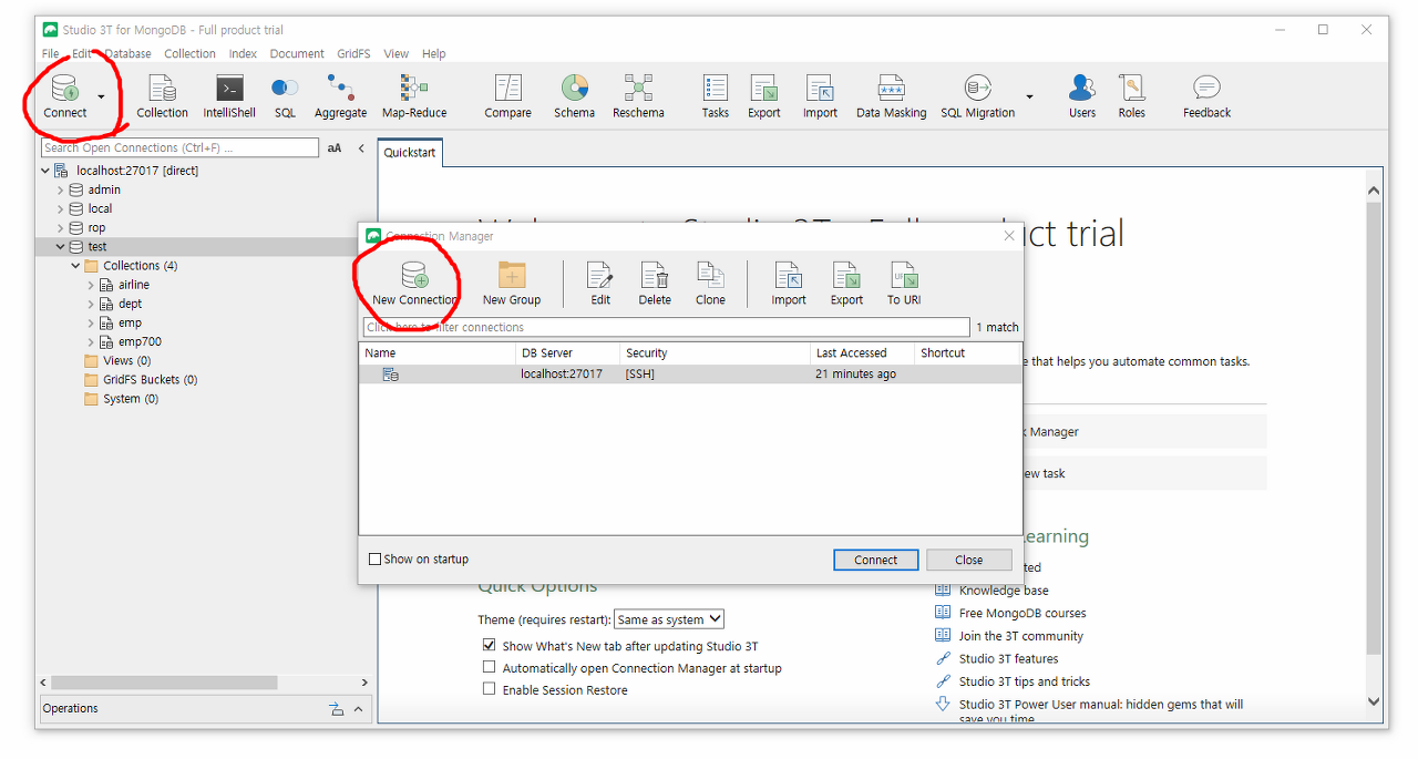 ㅇmongodb를 편하게 이용하기 위해서 GUI(Graphic User Interface) 툴 사용