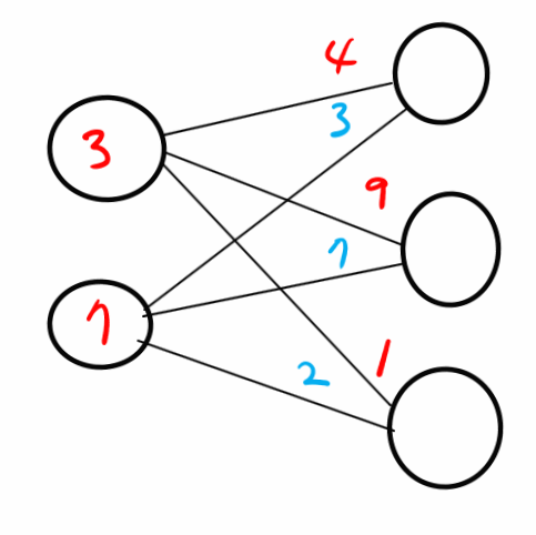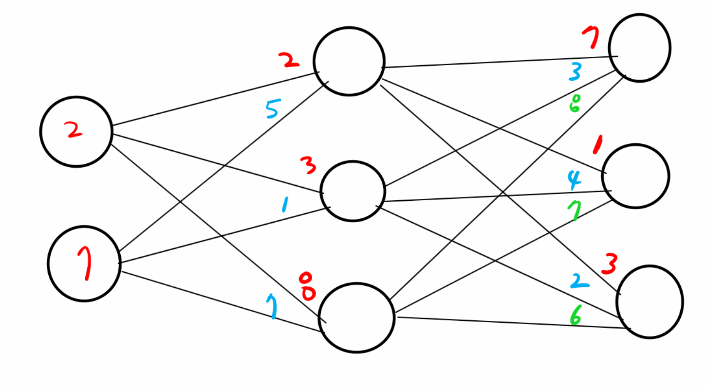 문제6. 위의 행렬 내적을 신경망으로 그려보시오.