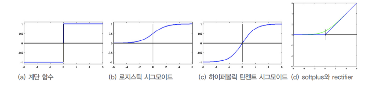 1. 활성화 함수 : 계단함수, 시그모이드 함수, 렐루 함수, 하이퍼블릭 탄젠트