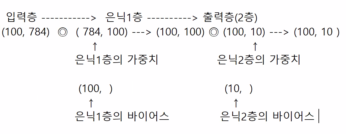 필기체 데이터를 학습 시키는 2층 신경망을 책과 똑같이 구성