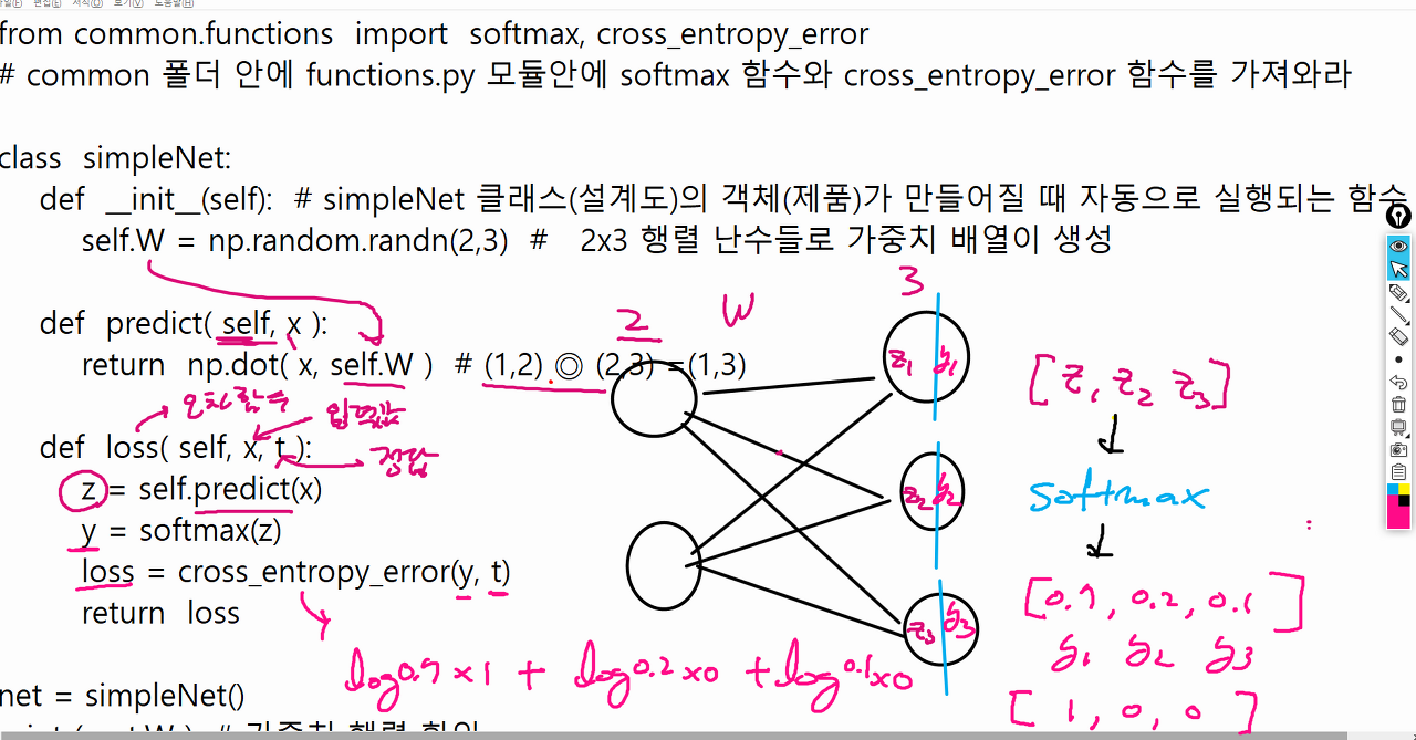 from common.functions import softmax, cross_entropy_error #필요한 패키지(common)를 홈디렉토리에 미리 가져다 놔야함