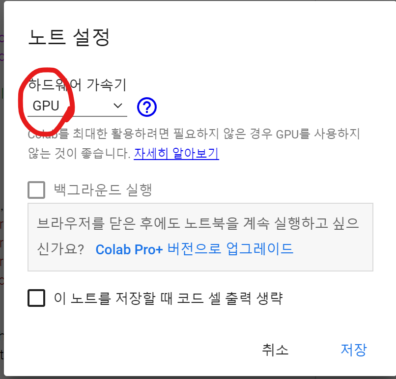 > 코드 돌리기 전에 런타임 GPU로 바꿔주기(런타임 유형)