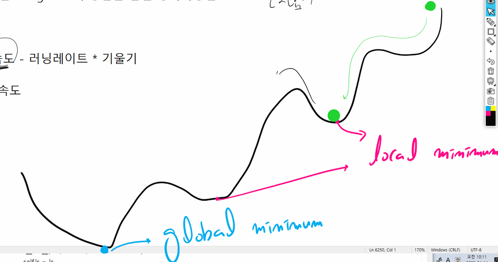 수식 : 가중치 = 가중치 - 러닝 레이트 * 기울기