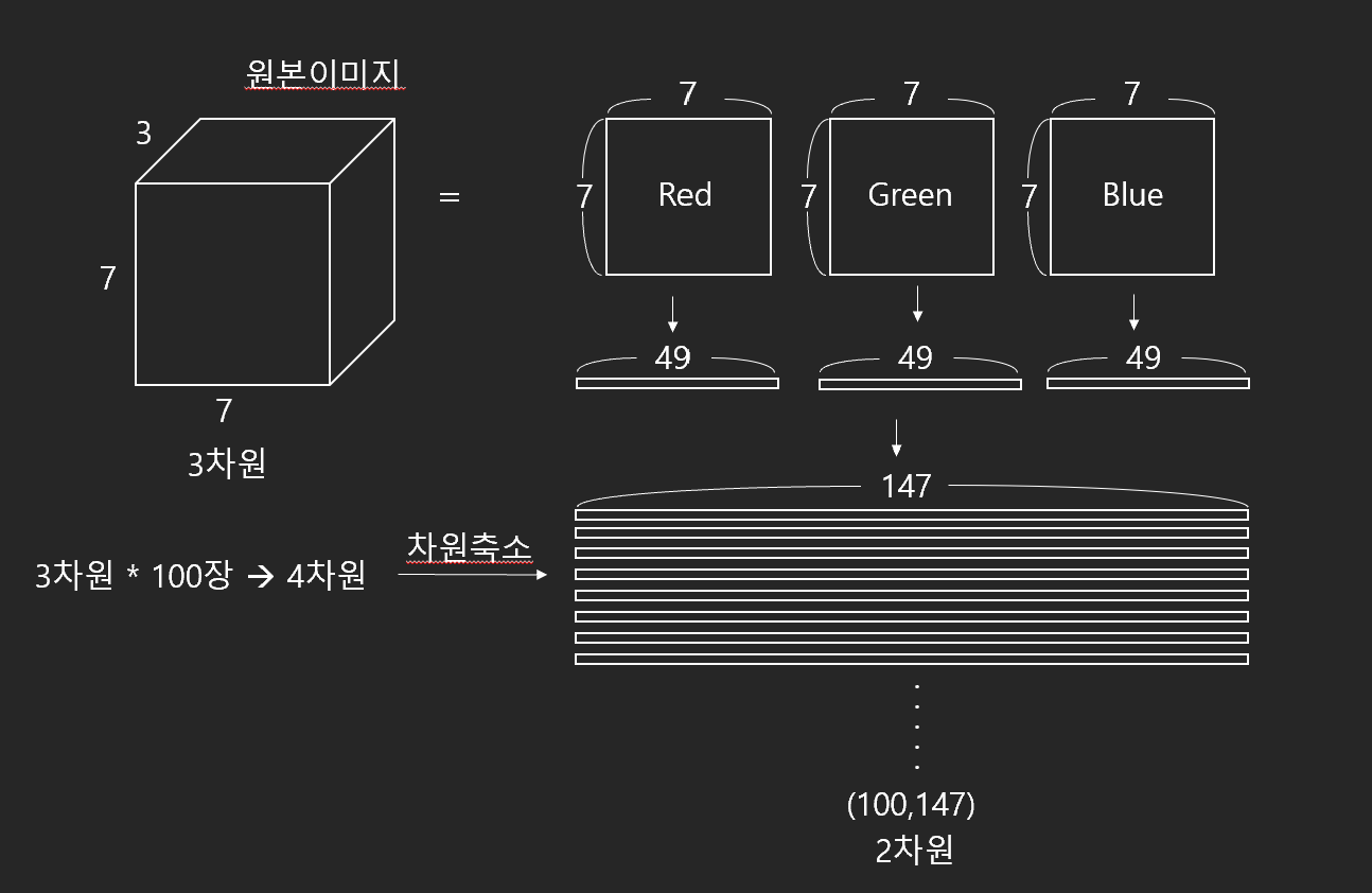사진 (100,3,7,7)을 (100,147)로 변경한 것