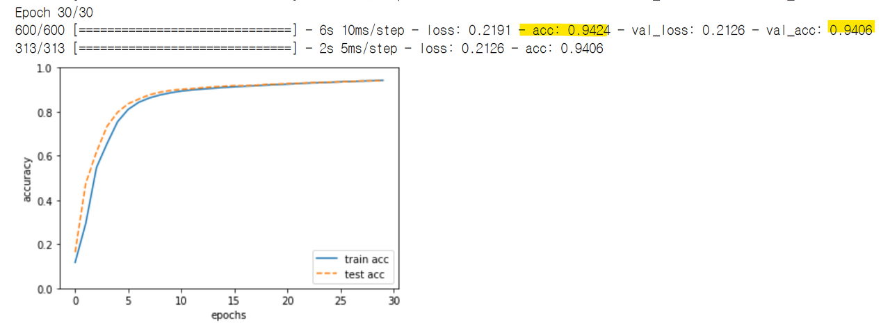 문제164. CNN층을 넣지 않은 완전연결계층만 있는 6장까지 구현한 필기체 분류 3층 신경망을 수행하시오.