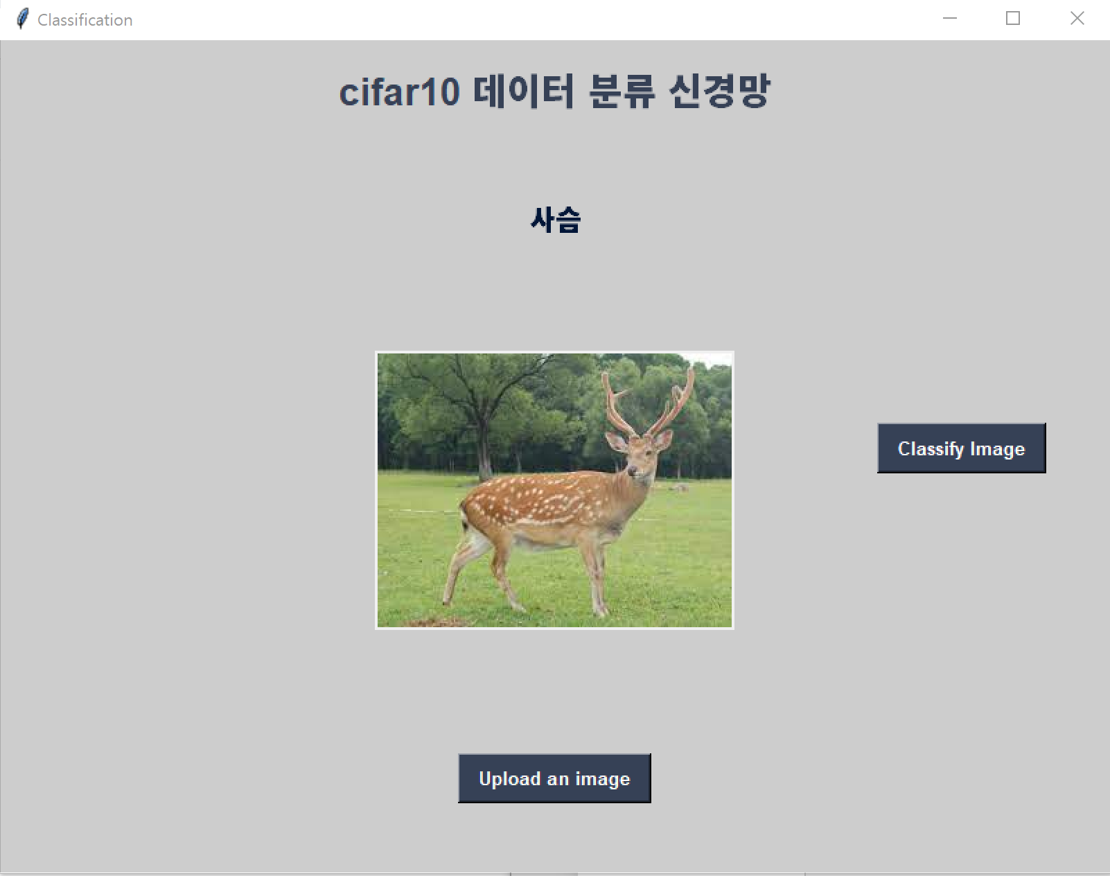 heading = Label(top, text="cifar10 데이터 분류 신경망",pady=20, font=('arial',20,'bold'))