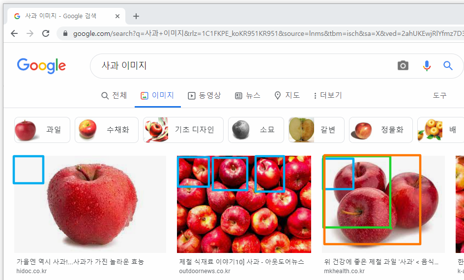 사과 이미지의 경우 하나의 화면에 사과 한 개가 크게 다 차지한 경우도 있고 사과 여러개가 하나의 이미지에 있는 경우가 있는데 이럴 경우에 필터의 사이즈를 한가지로 하지 않고 다양하게 하게 되면 사과가 하나가 있든 여러개가 있든 사과 이미지의 특징을 필터 사이즈 한개보다는 더 잘 잡아내게 됩니다.