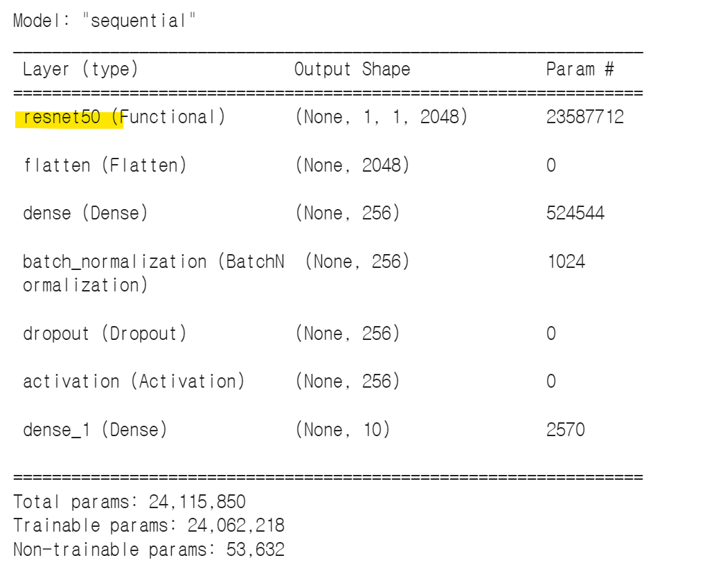 #7.resnet50 신경망에 완전 연결계층을 붙입니다.