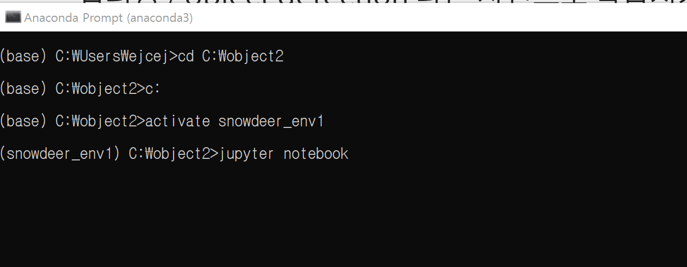 그 다음에 아나콘다 프롬프트 창을 열어 아래의 명령어를 수행하시오.