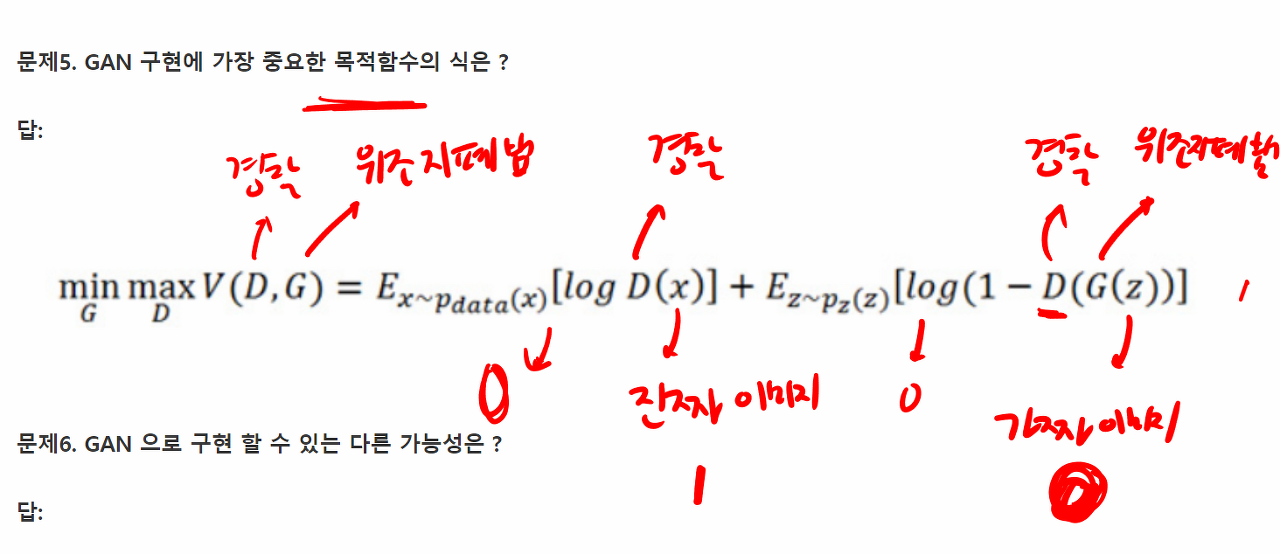 문제5. GAN 구현에 가장 중요한 목적함수의 식은 ?