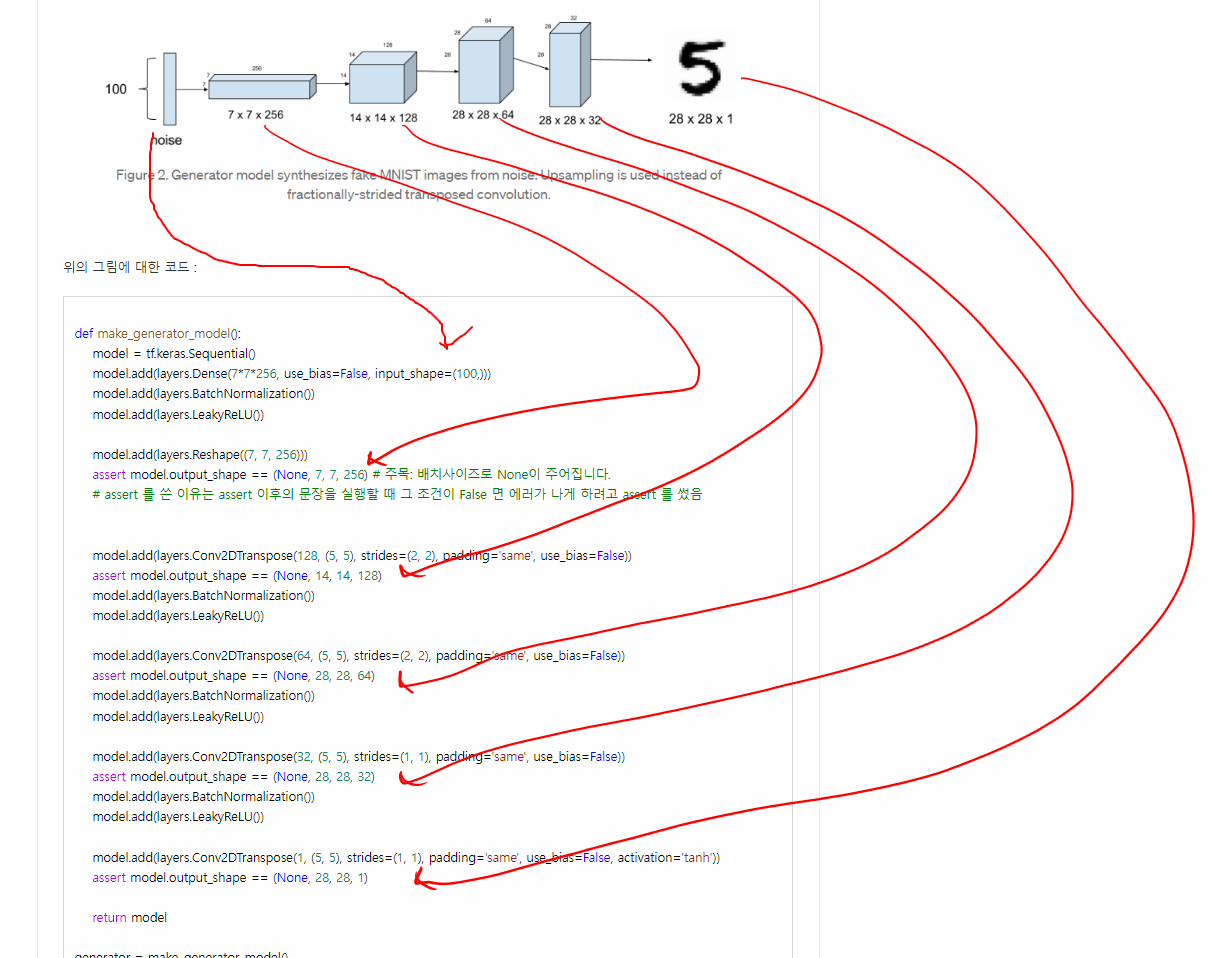 model.add(layers.Reshape((7, 7, 256))) # 7x7 사이즈의 256개의 습작 피처맵 생성