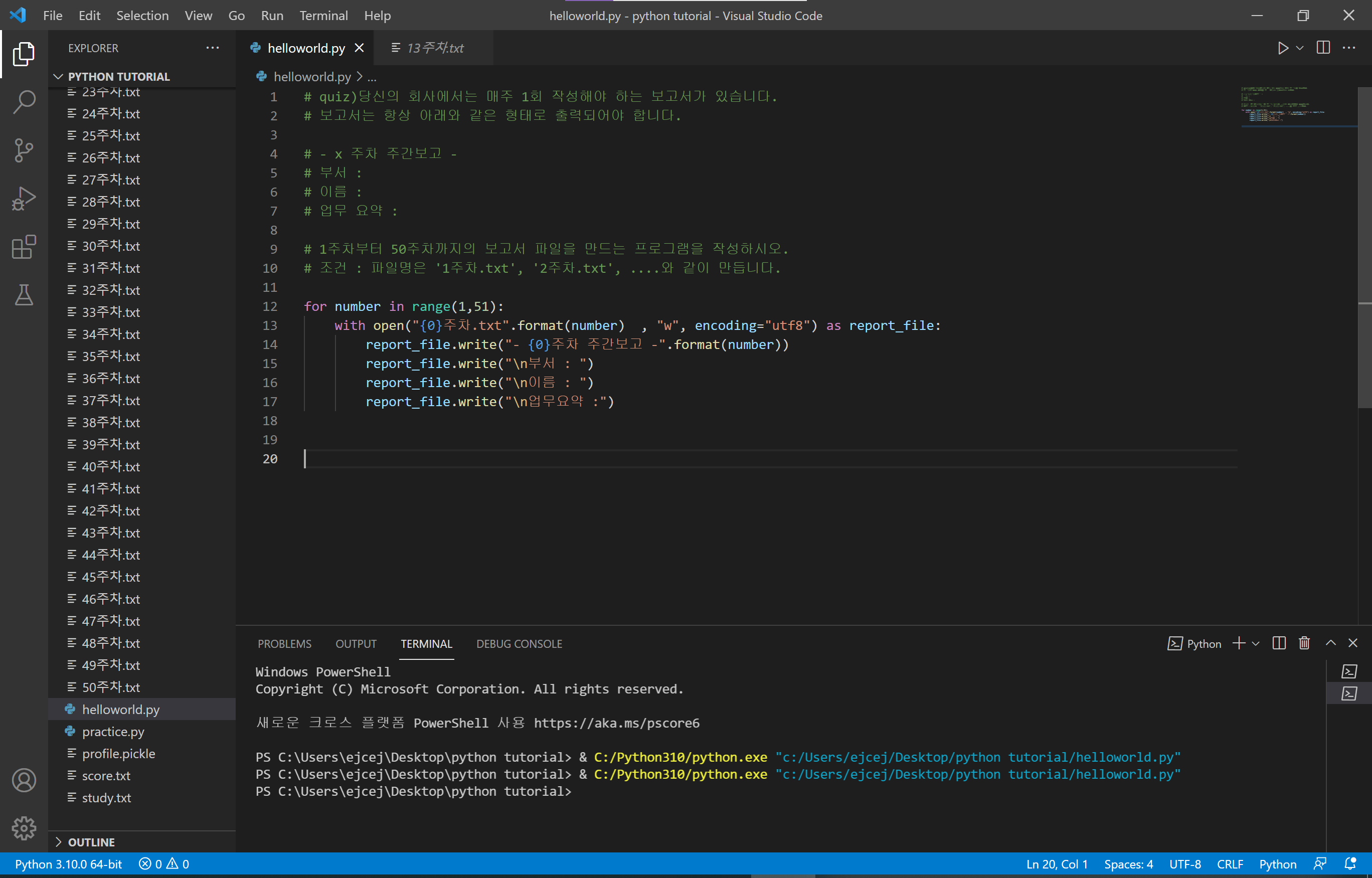 report_file.write("- {0}주차 주간보고 -".format(i))